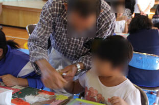 そして講師の先生のアドバイスを聞きながら、慎重な手つきで砂をのせていきました。