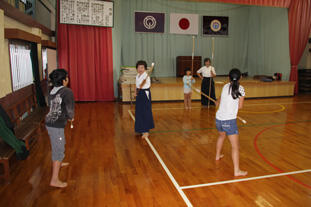 なぎなたの基本動作を繰り返し練習しました。子どもたちは1回目に比べて動きもスムーズになってきました。