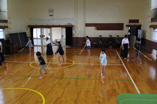 なぎなたの基本動作を繰り返し練習しました。子どもたちは1回目に比べて動きもスムーズになってきました。
