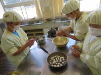 3月15日に全校児童で調理実習をしました。学校の畑で育てたほうれん草を使ったほうれん草のおひたし、玉ねぎのチーズ焼き、白玉団子です。それぞれに役割分担をして調理をしたり、一緒に白玉を丸めたりして、みんなで楽しく調理をすることができました。作ったものを囲んで、会話をしながら自分たちで作った料理をおいしく食べました。卒業を控えた6年生と一緒に過ごす楽しい時間になりました。