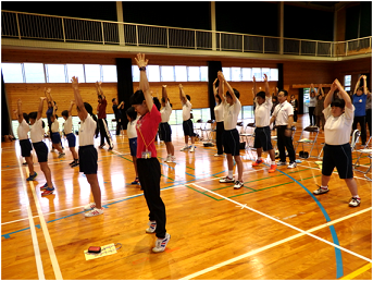 本日は、集会室で行進とダンスの練習をしました。ダンスについては、夏休み中も練習していた子どももおり、ほとんどの子どもがダンスの振りをしっかり覚えていました。