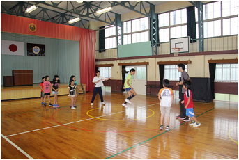 本日の昼休みはにぎやかでした。 小学生、中学生、ALTのブレア先生がいっしょに遊びました。