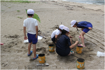 5月13日〈金)、サンビーチすみえで、島野浦小、浦城小、熊野江小の3校で南浦なかよし遠足を行いました。いろいろなゲームをしたり、いっしょに遊んだりして交流を深めました。次は7月に島野浦小でいっしょに学習します。
