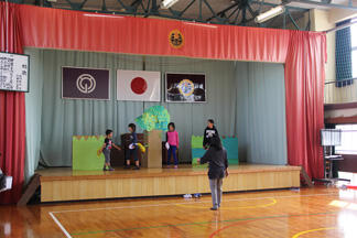 11月1日(日)のふるさと祭りに向けて劇の練習に取り組んでいます。集会室から、子どもたちの大きな声が聞こえてきます。本番に向けて、声の大きさ、間の取り方など細かいところに注意しながら練習が進んでいきます。