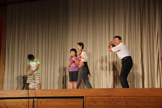 本日、放課後子ども教室で、第3回日本舞踊教室がありました。今回が最後なので、保護者の方や地域の方に「餅づくし」と「茶摘み」の踊りを披露しました。