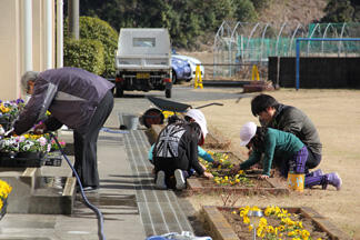 卒業式の準備を在校生と職員で行いました。卒業式に向けて育てた花も卒業式の会場を華やかに飾っています。