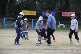 全校児童でサッカー