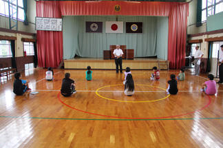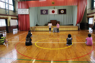 3月の全校朝会は、須美江町の普門寺住職 吉井さんの話でした。吉井さんから、座禅についての話を聞いた後、実際に座禅体験をしました。静まりかえった集会場で、寒さも忘れて座禅に集中する子どもたちの姿は凛々しく見えました。
