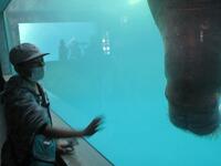 普段は見ることができない様々な魚たちをじっくり見ようと、子ども達は、水槽のガラス面に顔を近づけて観察していました。