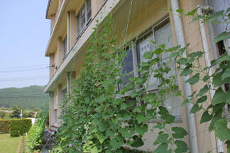 8月も下旬を迎え、夏休みも残り少なくなりました。ひょうたんの方は2階まで伸び、小さいひょうたんができていました。ゴーヤも順調に生長し、ゴーヤの実がたくさんついていました。2学期が始まる頃にはグリーンカーテンが完成すると思います。