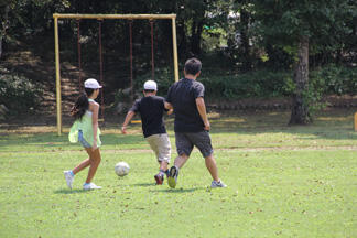 運動場に子どもたちの歓声が響いています。夏休みに遊べなかった友だちとサッカーをしたり、ブランコに乗ったりと久しぶりの昼休みを楽しんでいました。
