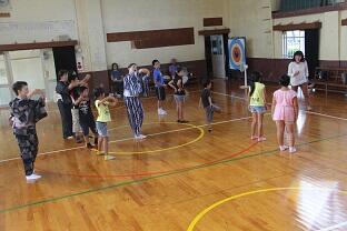 今日は雨で小中合同練習は南浦中体育館でした。小学校に帰って、集会室でラジオ体操とダンス(八木節)の練習をしました。今週は雨の日が多いので、集会室での練習が中心になると思います。