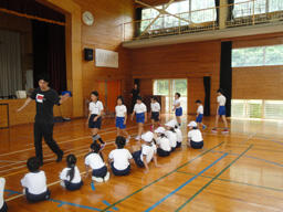 文化庁の「文化芸術による子供の育成事業―巡回公演事業―」 で、浦城小体育館を会場に「パントマイム」の公演を9月に実施します。この公演には南浦中、熊野江小、浦城小が参加しますが、今回(6月22日)は9月の公演前にワークショップを行い、パントマイムの基本動作を習いました。子どもたちは初めてのパントマイム体験で、「壁」「エレベーター」等を習いました。