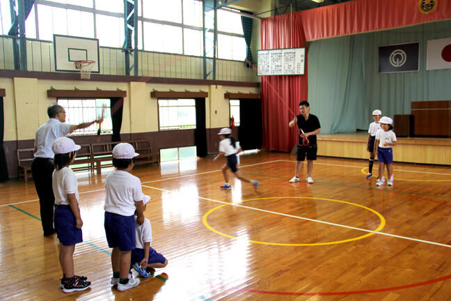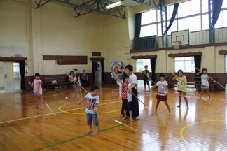 本日(3日)に放課後子ども教室で、なぎなた教室がありました。2年生以上は昨年度経験しているので、基本動作もスムーズでした。1年生は「なぎなた」初体験。なぎなたが重かったようで、構えるだけでもたいへんそうでした。