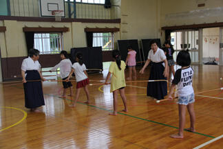 雨のために予定していたプールの授業ができませんでした。1~4年(8名)は集会室で「体つくり運動」をした後に「長なわ」を行いました。1年生3名も回るなわを怖がることなく、挑戦していきます。今回で「長なわ」は2回目ですが、連続跳びが6回できるようになりました。まだまだ記録が伸びていきそうです。