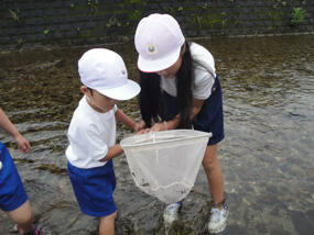 今回は、「自然の音」「水のにおい」「水の透明度」「川に生息する生き物」等を調査しました。どの調査項目も最高得点でしたので、子どもたちはとてもきれいな川であることを実感できました。また、自分たちが住んでいる地区の「自然を守ろう」という意識もさらに強くなったことだと思います。