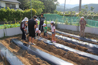 5月26日(火)に放課後子ども教室でイモの苗植えをしました。大きなイモができるようにと願いながら、1人4本ずつ苗を植えました。