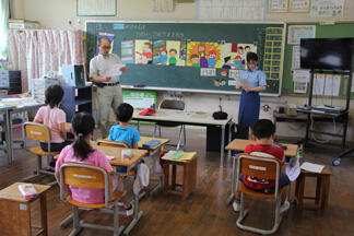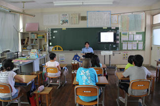 1・2年(4名)は「万引き防止」、3~6年(6名)は「携帯電話・スマートフォンやインタネットの危険性」について学習しました。学年に応じて、絵芝居やプロジェクターを使って指導していただきました。