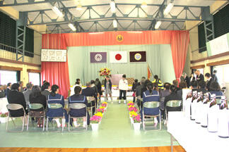 13:00から、小学校の集会室で、中学校4名、小学校2名の卒業生が餅まきを行いました。地域の方もたくさん集まっていただき、新しい門出を祝っていただきました。