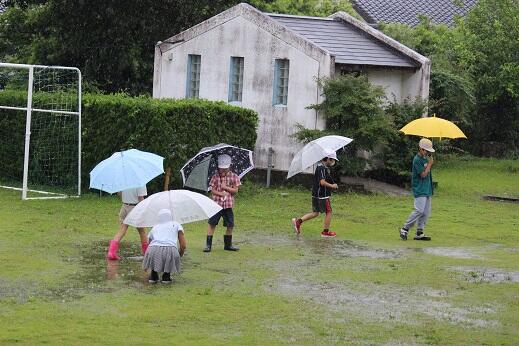 水たまりをのぞいたり、水の流れを探したりしていました。
