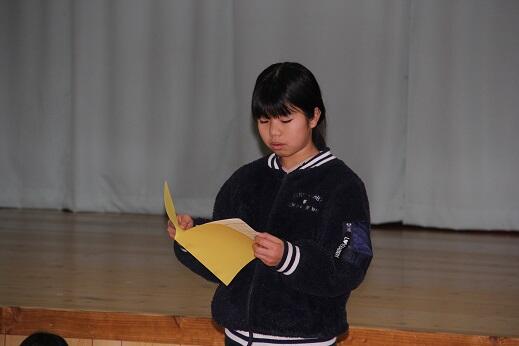 【新年の抱負を述べる3名の児童】