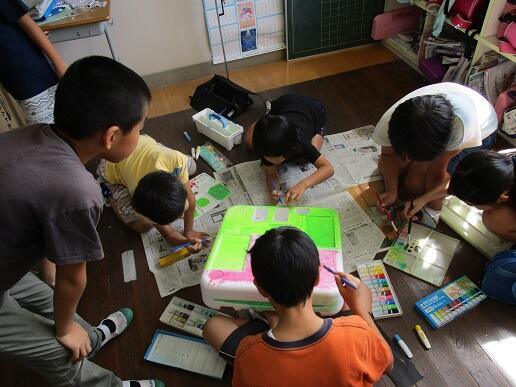 劇の小道具を作っている子どもたち。