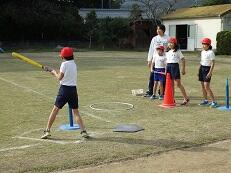 本日の体育は、「ティーボール」をしました。全校でやりますが、低学年はゲームの中で、高学年から教えてもらいながらルールを覚えていきます。