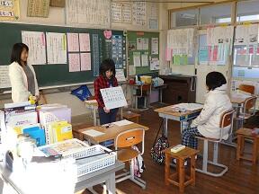 本日、新入学児童一日入学がありました。 来年度の入学児童は3名です。初めに1・2年教室で、生活科の授業を体験しました。1・2年生が「熊野江小の1日」「1年間の楽しい行事」の説明と「熊野江小クイズ」を行いました。3名の新入学児童は熊野江小の様子が少しはわかったのでないかと思います。その後、給食を食べた後に、昼休みには在校生と全校遊びもしました。短い時間でしたが、熊野江小の楽しさが実感できたと思います。