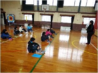 3学期、第1回の体育は見学者がいて、4名での体育でした。本日の集会室は気温が低く、前半は上着を着てやっていましたが、後半は上着を脱いで、元気いっぱいに活動していました。