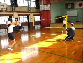 今日の体育は、全学年です。 手つなぎオニ、バドミントン、ドッジボールと集会室の中は、子どもたちの歓声が響き渡っていました。