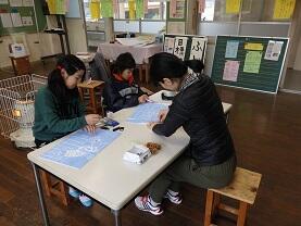 1月21日(土)の土曜授業は、安全マップ確認を行いました。 子どもたちは、熊南地区と熊北地区に分かれ、危険箇所、津波避難場所、お助けハウス等を再度確認しました。その後、学校に帰って、平成29年版の安全マップの作成に取り組みました。