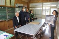 本校は、令和6年の1月7日に創立150周年を迎えました。その記念に何かを残そうと本校の卒業生の方々が実行委員会を発足させ、3月に記念のドローン撮影を行いました。その写真を大きなパネルにして小学校へ贈呈してくださいました。ありがとうございました。