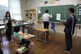 本日、第3回三校(熊野江小・南浦中・浦城小)合同研修会が本校でありました。その中で、3・4年国語科の研究授業がありました。3年は「働く犬についてのリーフレットづくり」、4年は『くらしの中の「和」と「洋」についてのブックづくり』に取り組みました。多くの先生が参観する中で、子どもたちは少々緊張気味でしたが、自分の考えをしっかり発表することができました。
