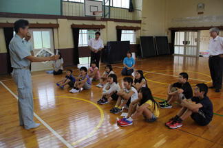 7月の全校朝会は県水産振興協会事務局長の外山さんから「県水産振興協会」で育てている魚の話をしていただきました。ヒラメ、鯛など子どもたちが知っている魚がたくさん出てきました。