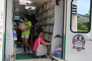本日(5月22日)は移動図書館「ふくろう号」が来る日です。子どもたちは自分が読みたい本を10冊まで借りることができ、来月の「ふくろう号」の日に返本します。さて、読みたい本は見つかったかな。