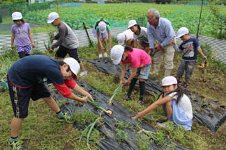 5月11日(月)放課後子ども教室でタマネギの収穫が行われました。地域の皆さんと一緒に30個以上のタマネギを畝から引き抜きました。