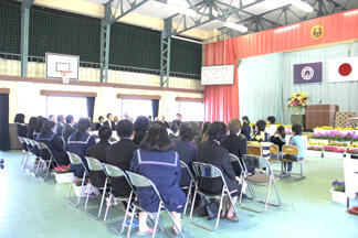 13:00から、小学校の集会室で、中学校4名、小学校2名の卒業生が餅まきを行いました。地域の方もたくさん集まっていただき、新しい門出を祝っていただきました。