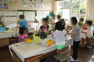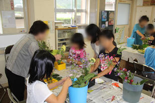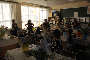 10月10日(金)、放課後子ども教室で2回目の生け花教室がありました。