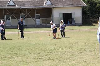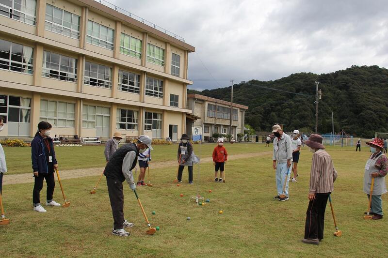 10月27日(木)、子どもたちと熊野江地区の方々とのふれあいを目的としたグラウンドゴルフ大会がありました。毎年行われている行事で、本年度もたくさんの地域の方が来てくださいました。子どもたちは、地域の人と一緒に、歓声を上げながらグラウンドゴルフを楽しみました。ホール・イン・ワンも飛び出して、とっても盛り上がった大会となり、子どもたちも、きっとよい思い出になったことでしょう。熊野江地区のみなさん、ぜひ、来年もお越し下さい!