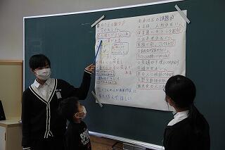 ※先生から出された問題に、みんなで挑戦しました。話合いながら解決に近づいていきました。