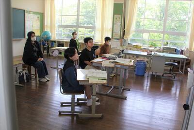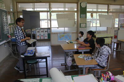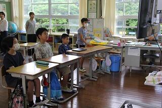 ※ 最初は、少し緊張した雰囲気で始まりましたが、にこやかな講師の先生の笑顔に子どもたちもたくさん発表するようになり、授業が盛り上がりました。