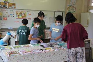 学校図書館に入れる本を選ぶ、選書会を行いました。業者の方が用意してくれた本の中から、それぞれに読みたい本を選びました。