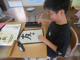 5年生、6年生は書写の時間、姿勢に気をつけて、丁寧に字を書きました。