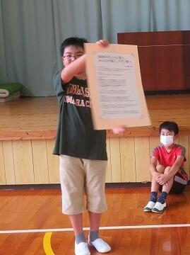 7月の全校集会を行いました。子どもたちの学習の発表もだんだんと上達してきています。