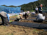 学校の畑で、野菜の種まきと苗植えを行いました。地域の方11名の皆さんが集まってくださり、一緒に作業をしました。地域学校協働活動推進員の方の指導の下、みんなで手分けをして種を蒔いたり、苗を植えたりしました。地域の皆さんは、畑作業に慣れていてテキパキとしてくださいました。植えた野菜は、レタス、キャベツ、ブロッコリー、大根、はつか大根、ほうれん草、かぶ、にんじん、白菜の9種類です。これから毎日子ども達は、畑の様子を見て、水やりなどのお世話をし、野菜の生長を見ていくことを頑張ります。