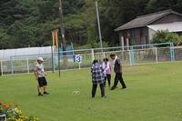8・9月お休みしていたグラウンドゴルフは、10月から再スタートしました。2日(水)は、曇っていて8ホールにさしかかったところで、雨がポツポツと落ちてきましたが、地域の方2名を含めた7名の1チームでグラウンドゴルフを楽しみました。子ども達は、ホールインワンが出そうな勢いで、よい球を跳ばしていました。
