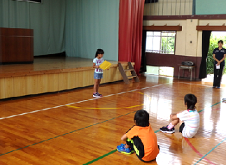 指導者として、県スポーツ振興課2名、延岡市スポーツ推進委員4名が来ていただき、「1130体操」を1つ1つ丁寧に教えていただきました。