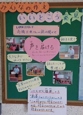 先月、行われた「高橋巨典さん」の読み聞かせから、たくさんことを学びました。教えてもらったことを2階の掲示板に貼っています。