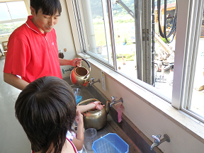 2年生は、かさの学習中です。 やかんの水は、何Lでしょうね。