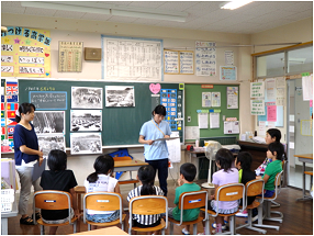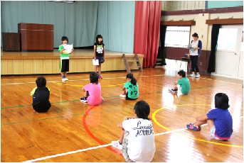 今月の担当は3・4年でした。初めに校歌を歌い、今月の目標を確認しました。その後、3年生がモンシロチョウの育ち方を紙芝居にして発表しました。発表の仕方は、低学年の子どもたちにも分かるように絵を見せながら、ゆっくりていねいに話していました。自分が学習したことをみんなにも伝えたいという思いがこもった発表でした。